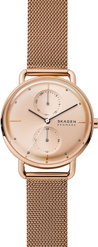 The SKAGEN HORIZONT SKW2931 has a sleek and modern design, with a round rose gold stainless steel case that measures 15mm in diameter and 16mm in height. The pink gold dial adds a touch of sophistication to the overall look of the watch, while the mineral glass ensures durability and scratch resistance.